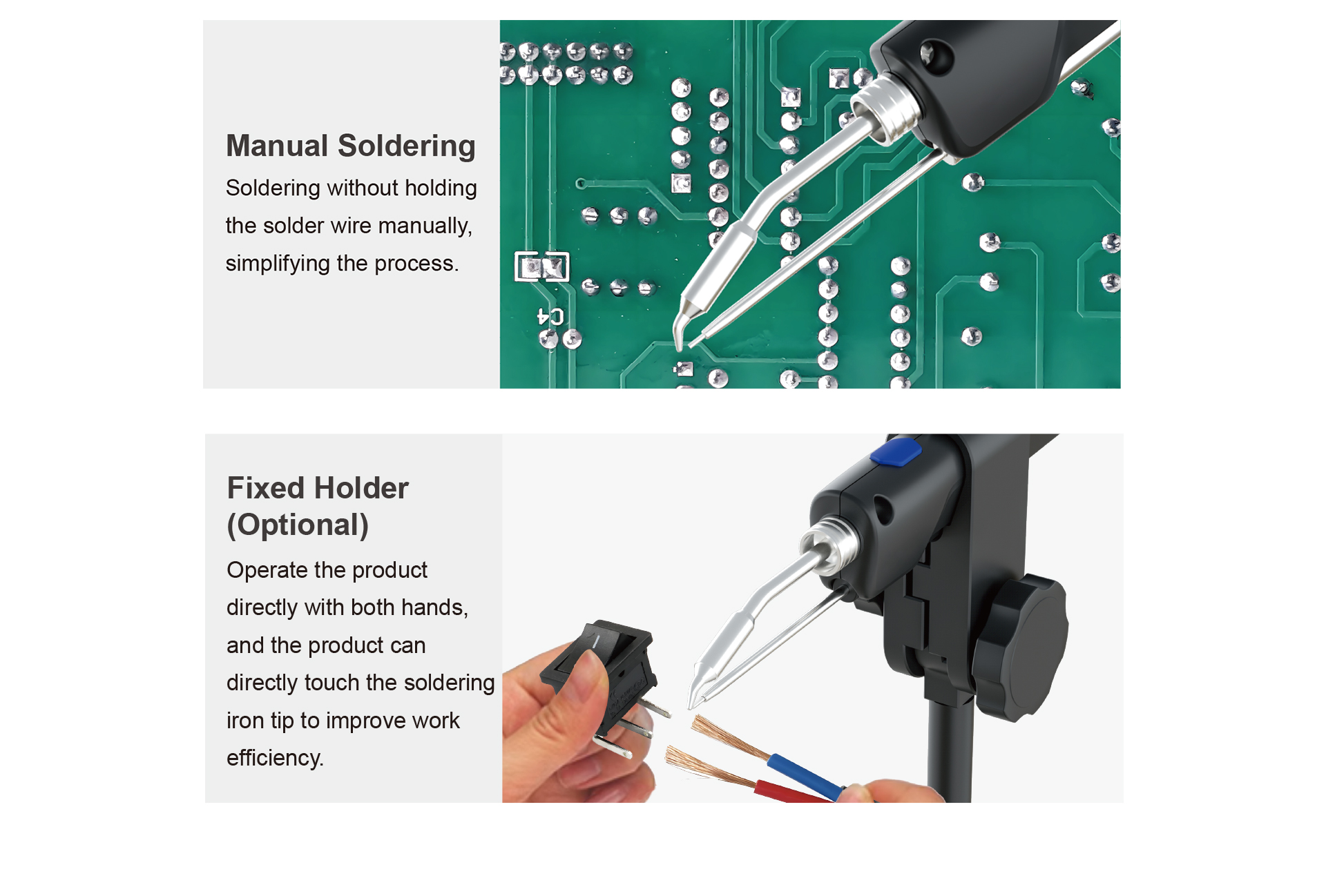 Automatic solder dispensing system, one handed operation, simple and easy soldering, improving work efficiency.