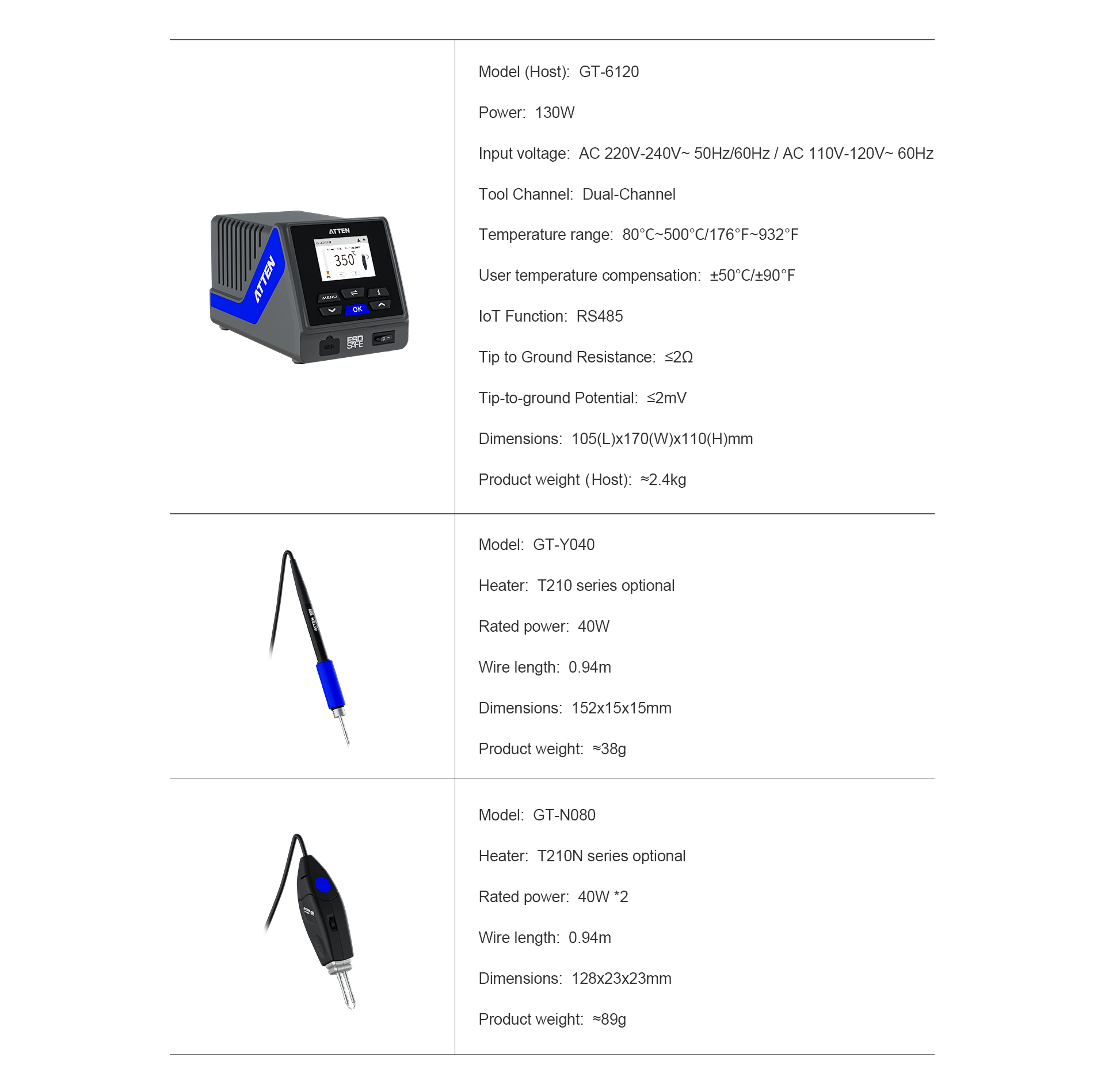 ATTEN provides a two-year warranty for the GT-6120 and dedicated after-sales service to maintain product reliability. As a recognized manufacturer of high-quality ATTEN soldering stations, the company supports customers with technical assistance and OEM service options.