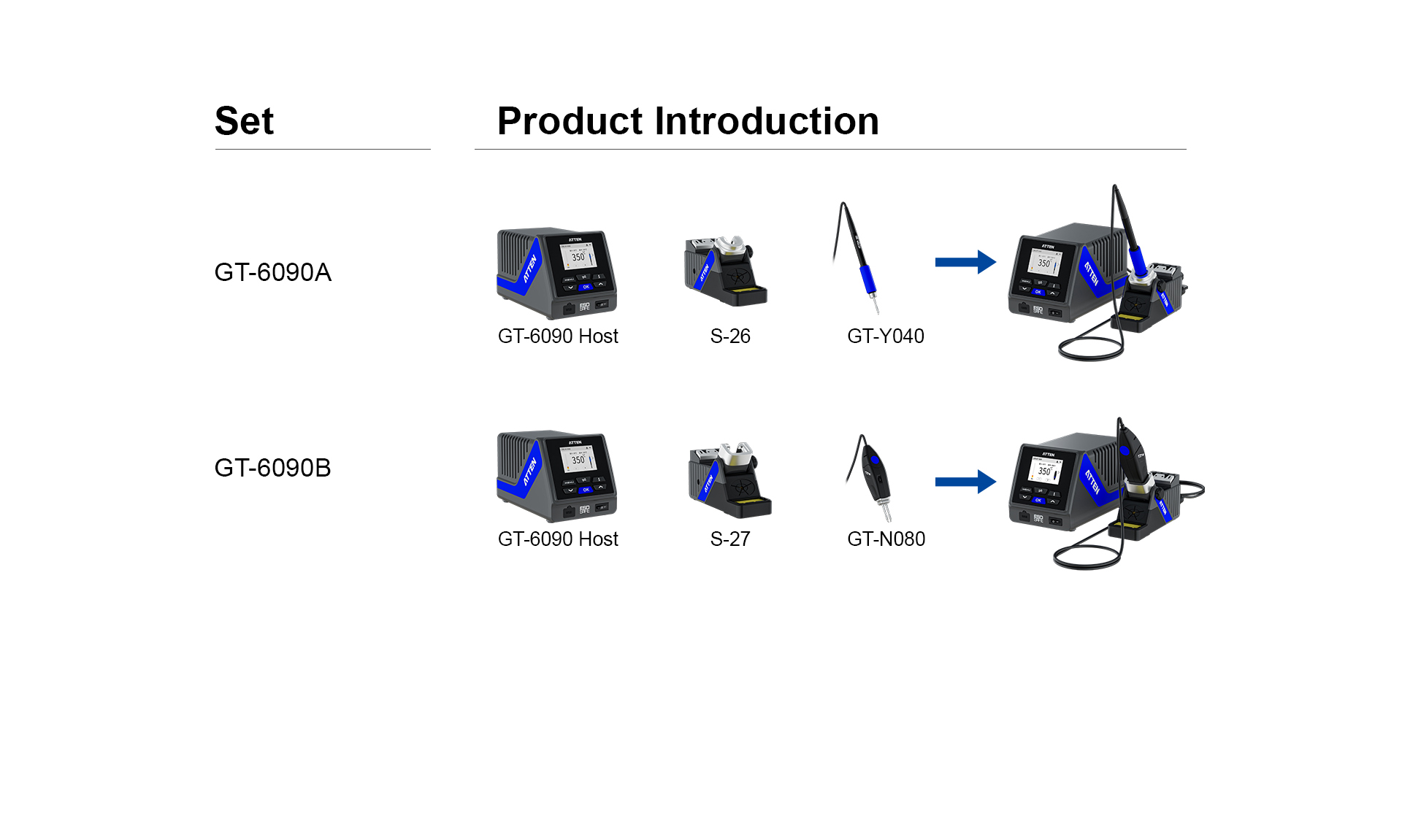 Featuring an intelligent temperature regulation algorithm, the GT-6090 maintains thermal stability within narrow tolerances, critical for soldering high-density circuit boards. The unit includes a clear LED display for real-time monitoring and fast mode adjustments, facilitating rapid setup changes and reducing downtime. Its ergonomic soldering iron handle and quick heat-up capability enhance workflow efficiency during extended use periods. Robust construction materials and modular design promote durability and ease of maintenance, positioning this precision soldering station as a reliable, long-term investment in electronics manufacturing facilities.